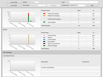 Отчётность позволяет администраторам предотвратить утечку данных и обеспечить соблюдение политик. Консоль управления включает в себя более 50 шаблонов отчётов, которые могут быть настроены по содержимому и времени. Они могут доставляться автоматически по расписанию и экспортироваться в другие приложения. Упрощенное отслеживание писем через графический интерфейс позволяет администраторам быстро определить, как было обработано письмо и было ли оно доставлено.