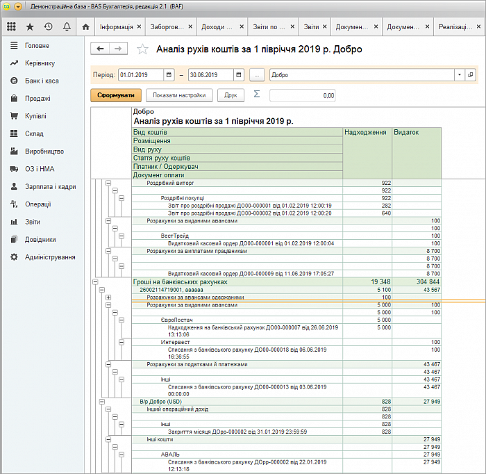 BAS Бухгалтерия включает следующие подсистемы для решения задач: