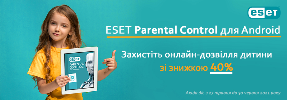 До Міжнародного дня захисту дітей компанія ESET дає можливість подбати про кібер-безпеку юних користувачів і пропонує 40% знижку на свій продукт.