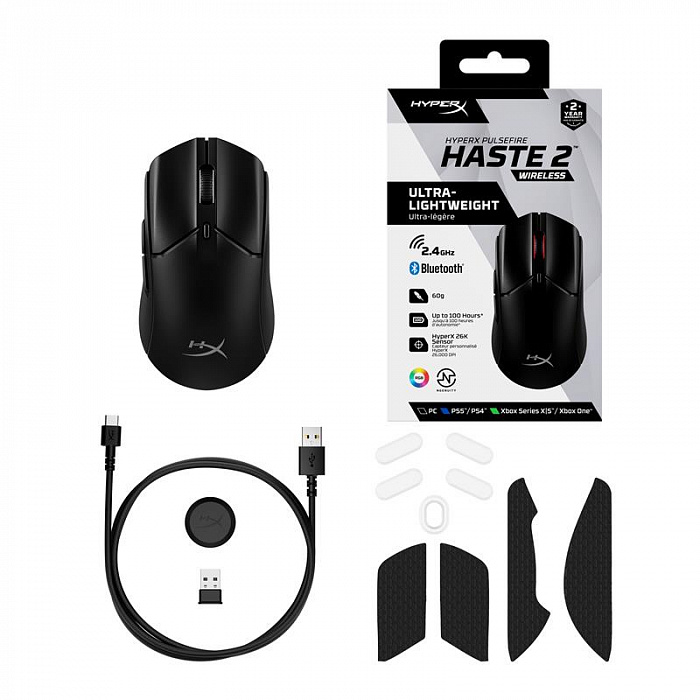 Показати всеМиша HyperX Pulsefire Haste 2 Wireless створена для геймерів, які не можуть дозволити собі втрачати ані мілісекунди і хочуть мати свободу бездротового підключення. Розробники оптимізували оригінальну Pulsefire Haste Wireless, створивши її нащадка в міцному корпусі, з блискучою продуктивністю та 100 годинами автономності, але вагою лише 61 г. Pulsefire Haste 2 Wireless оснащена дворежимним бездротовим підключенням, що дозволяє перемикатися між бездротовим з'єднанням 2,4 ГГц і Bluetooth, а також зарядним кабелем, який дозволяє користуватись мишею в дротовому режимі під час заряджання. Також HyperX створили високопродуктивний набір компонентів, серед яких виділяється високоточний датчик HyperX 26K, що має власну роздільну здатність до 26 000 точок на дюйм зі швидкістю відстеження до 650 IPS (16,5 м/с). Pulsefire Haste 2 Wireless оснащена фірмовими перемикачами HyperX, які забезпечують тактильний і звуковий зворотний зв'язок на кожне приємне натискання і розраховані на термін служби до 100 мільйонів натискань. Ви також насолоджуватиметеся чудовим фізичним контролем над мишею завдяки накладкам, що входять до комплекту, надгнучкому паракордовому кабелю та глайдам з чистого тефлону. Отримайте максимальну віддачу від кожного руху миші з програмним забезпеченням HyperX NGENUITY: створюйте макроси для 6 програмованих кнопок, налаштовуйте параметри DPI та персоналізуйте RGB-підсвітлення.
